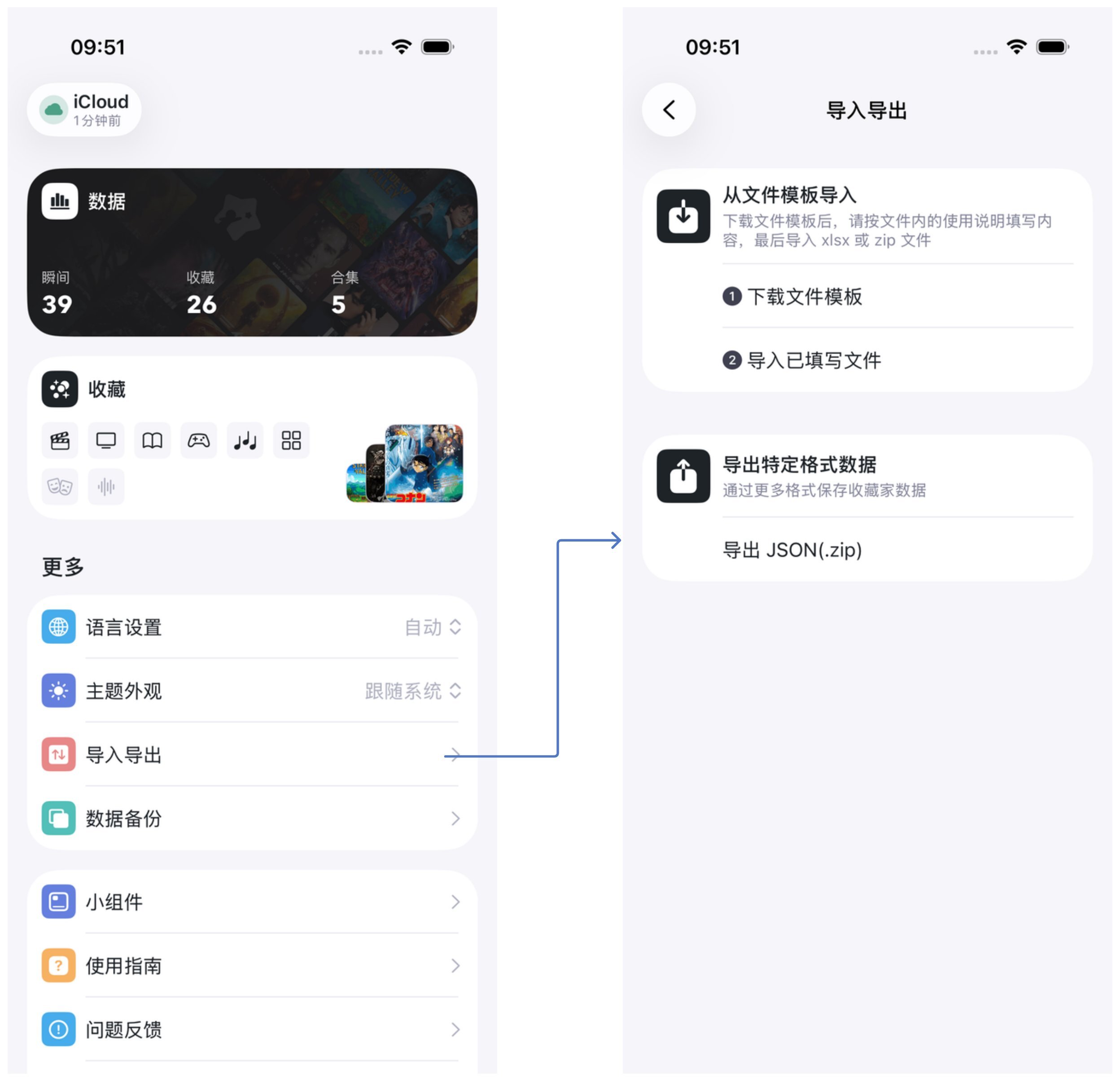 收藏家可以让你使用文件模板快速将已有的收藏批量导入应用。
